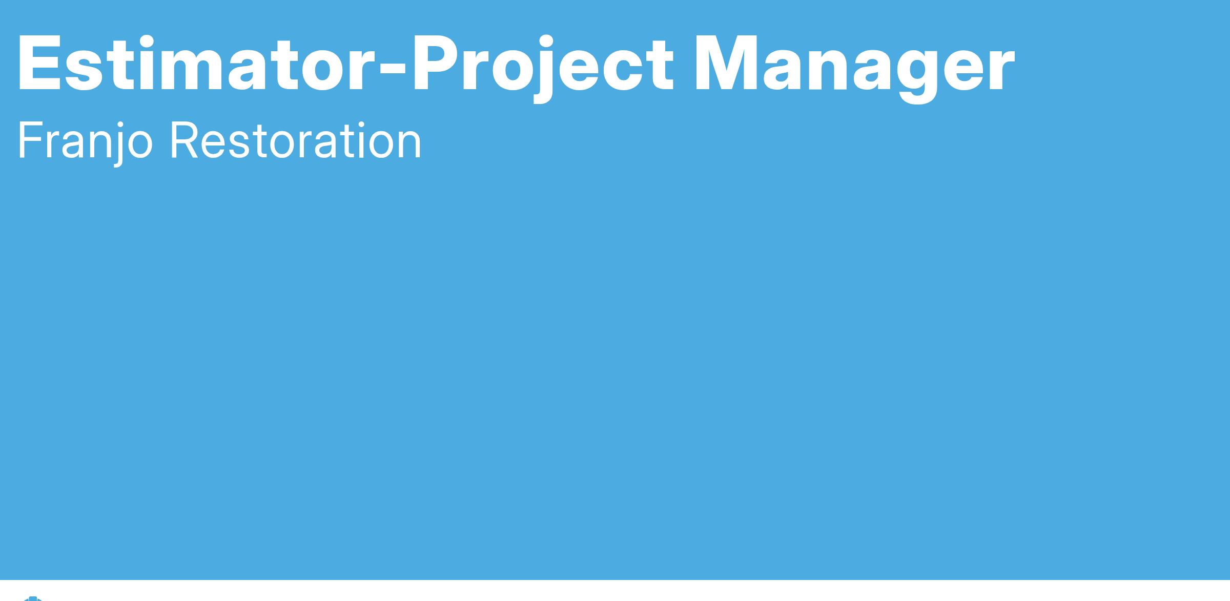 The Estimator-Project Manager coordinates the preparation of estimates based on site visits /conceptual information, and hard bid estimates. This position provides support services as required by the management department during the pre-construction and restoration phases. This position provides the scopes and pricing for projects. The Estimator-Project Manager position is responsible for representing Franjo Restoration on a range of subjects related to Restoration and may be responsible for making decisions on behalf of the firm. The Estimator-Project Manager will work to ensure that projects are planned, coordinated, and completed in a timely, efficient, effective, and profitable manner. Responsibilities will also include client site meetings, permitting, change order creation, project closeout, and overall management to ensure customer satisfaction. This position is located at our Franjo Restoration office in Baldwin, PA.