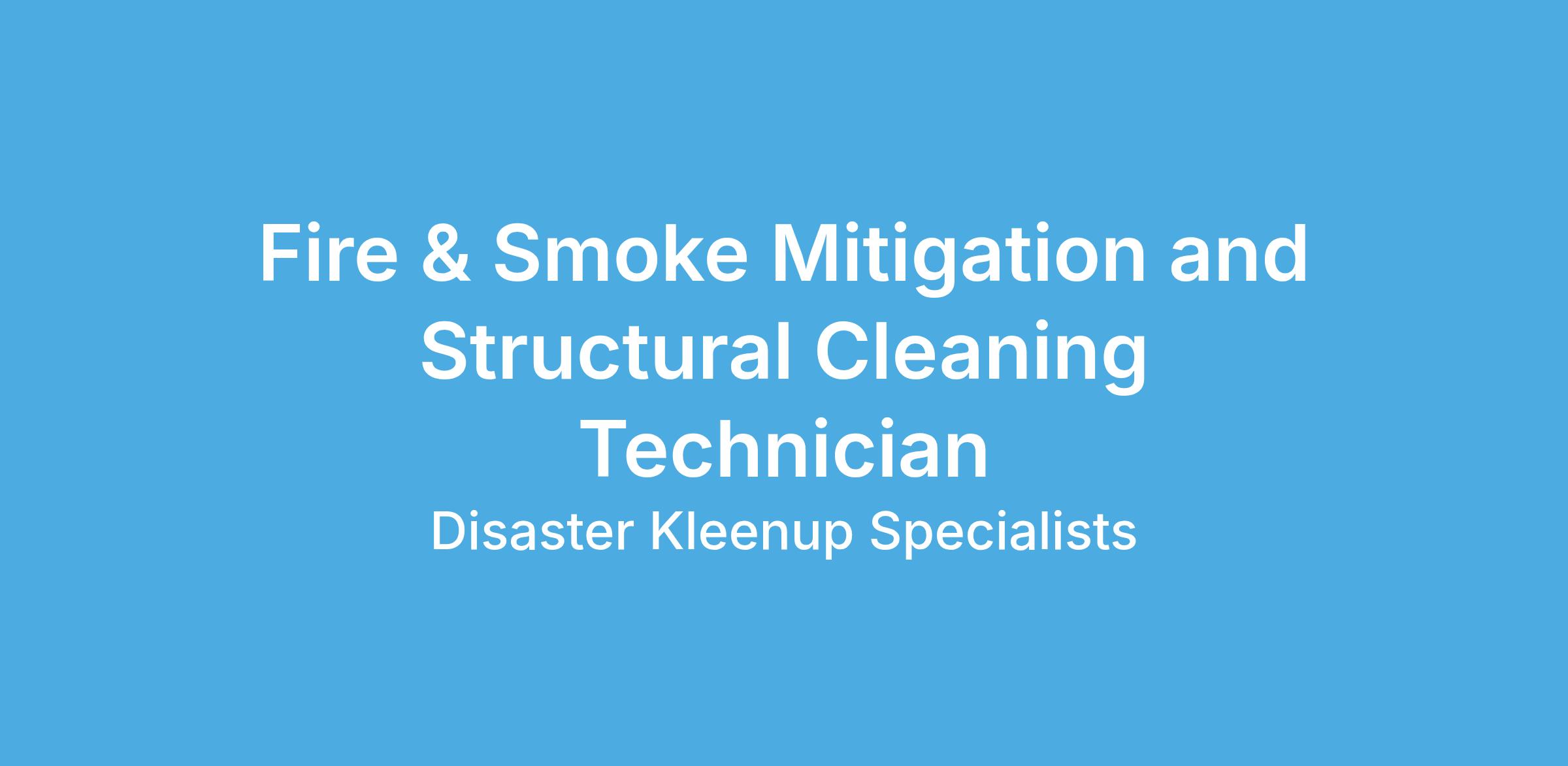 Fire & Smoke Mitigation Technician (Structural Cleaning / Restoration)