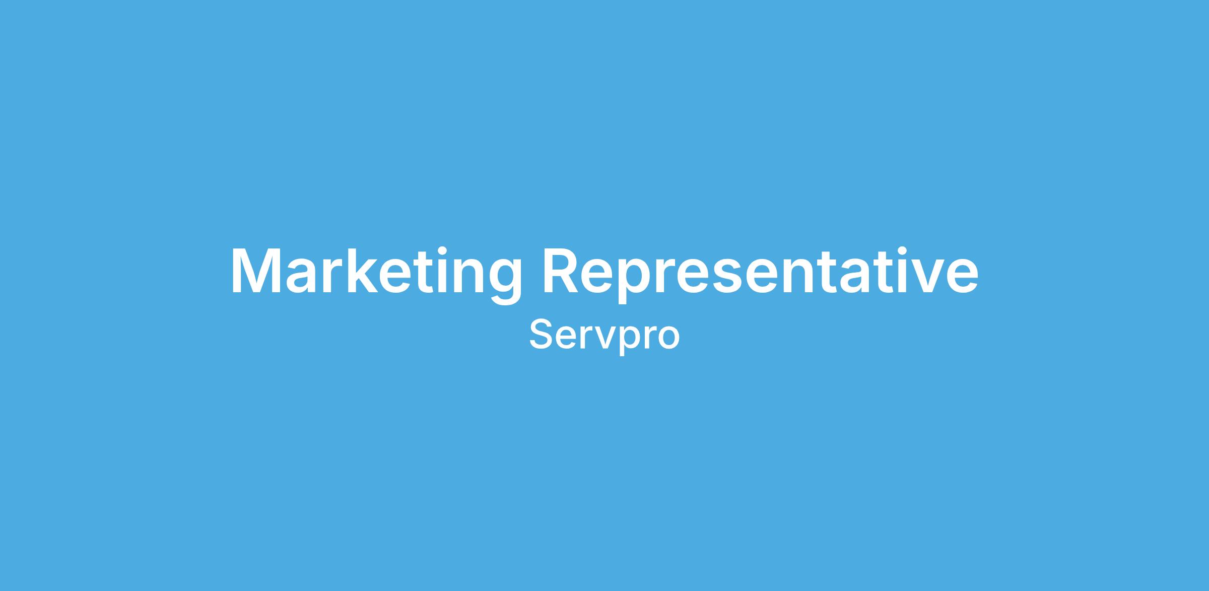 As a Marketing Representative, you will be making a difference every day by increasing brand awareness and sharing the SERVPRO story. In this role, you will need to be comfortable meeting new people, have excellent communication skills (in-person and online) and be motivated by sales goals.